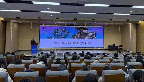 胡朝都副教授以《从哥白尼、康德到马克思——以“发展”的概念与主体性的关系为线索》为题,围绕“发展”的概念与主体性之间的关系,将深奥的专业理论进行了通俗易懂地讲授。讲座从人们熟悉的日常经验出发,通过对比古今自然环境与人文社会的发展情况,揭示理性推论超越感性经验的价值所在。胡副教授在讲座中指出,哥白尼革命实现了从太阳围绕地球到地球围绕太阳的认知范式根本转变,强调真正的哲学革命同样需要这样一种“哥白尼式”的立场转化,即确立人作为实践主体的中心地位。在此基础上,讲座深刻阐释了马克思主义的“发展”概念,这种发展观绝非建立在经验基础上的自然过程,而是以人的实践活动为基础,以主观能动性的发挥为动力,不断认识和解释世界、改造世界的辩证运动。